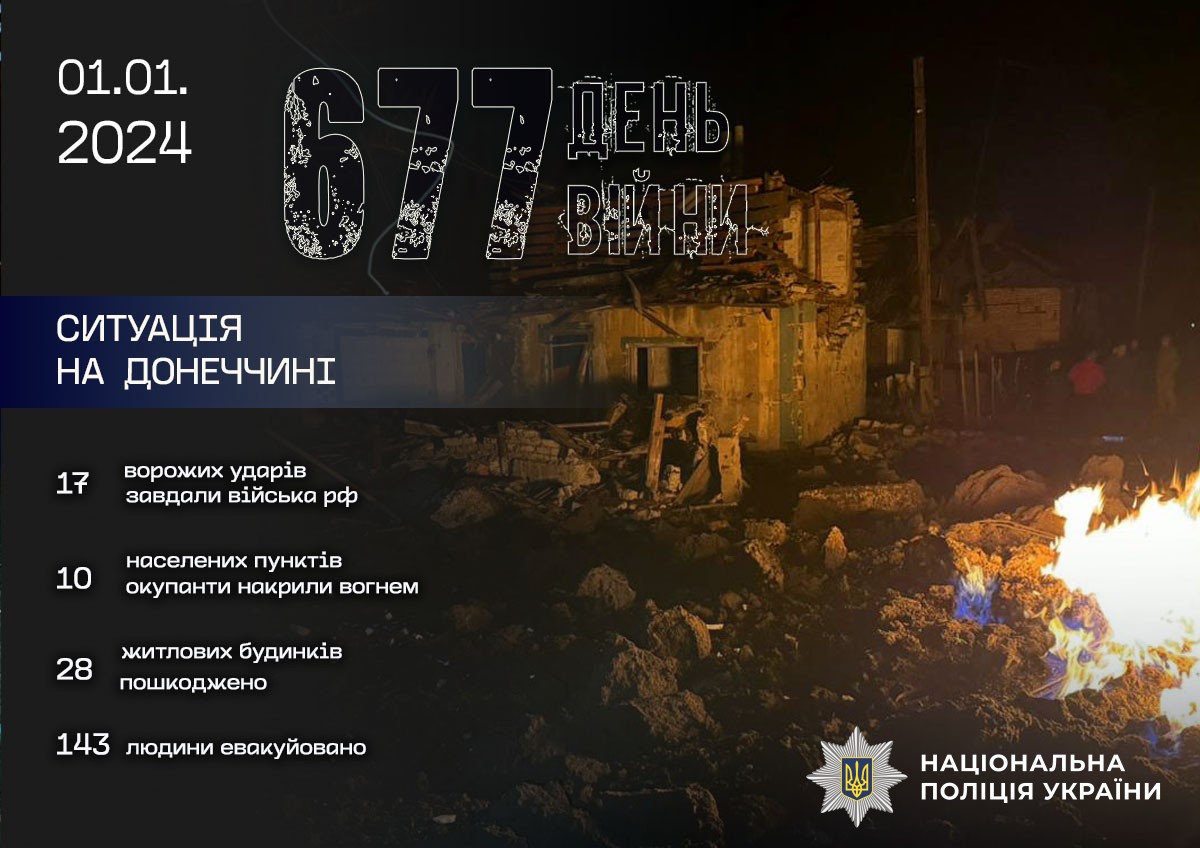 За добу, 31 грудня, поліція задокументувала 17 ворожих атак на цивільне населення. Окупаційні війська поцілили по житловому сектору ракетами, РСЗВ «Ураган», «Град», артилерією.