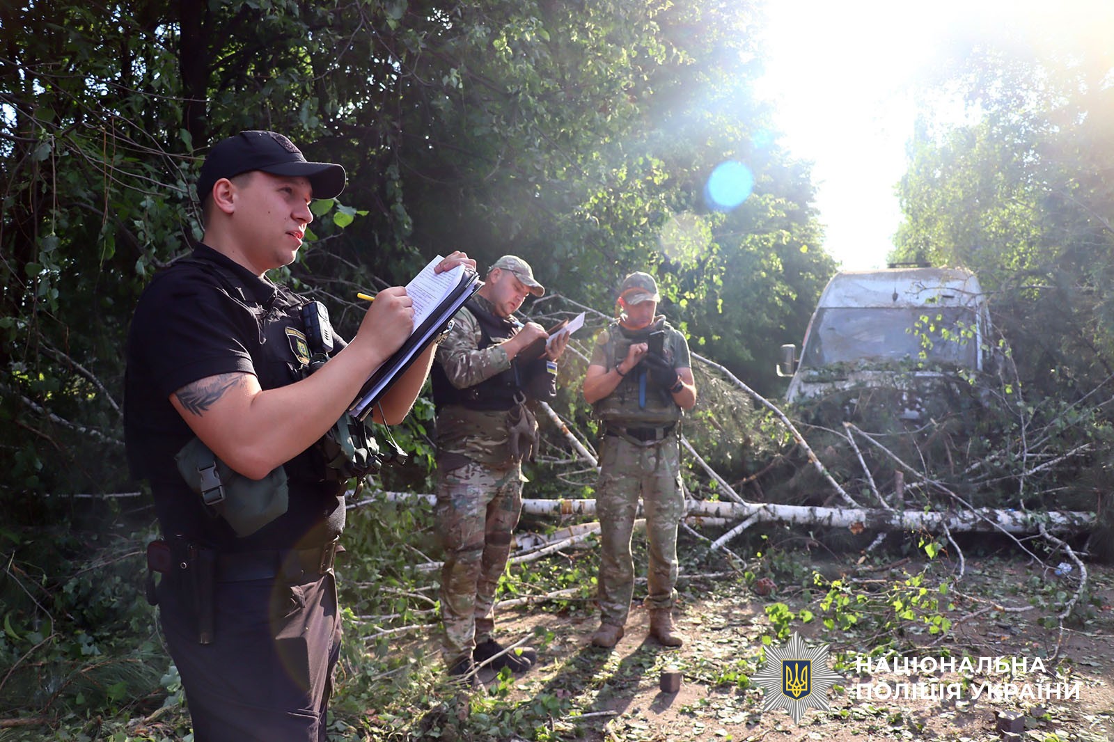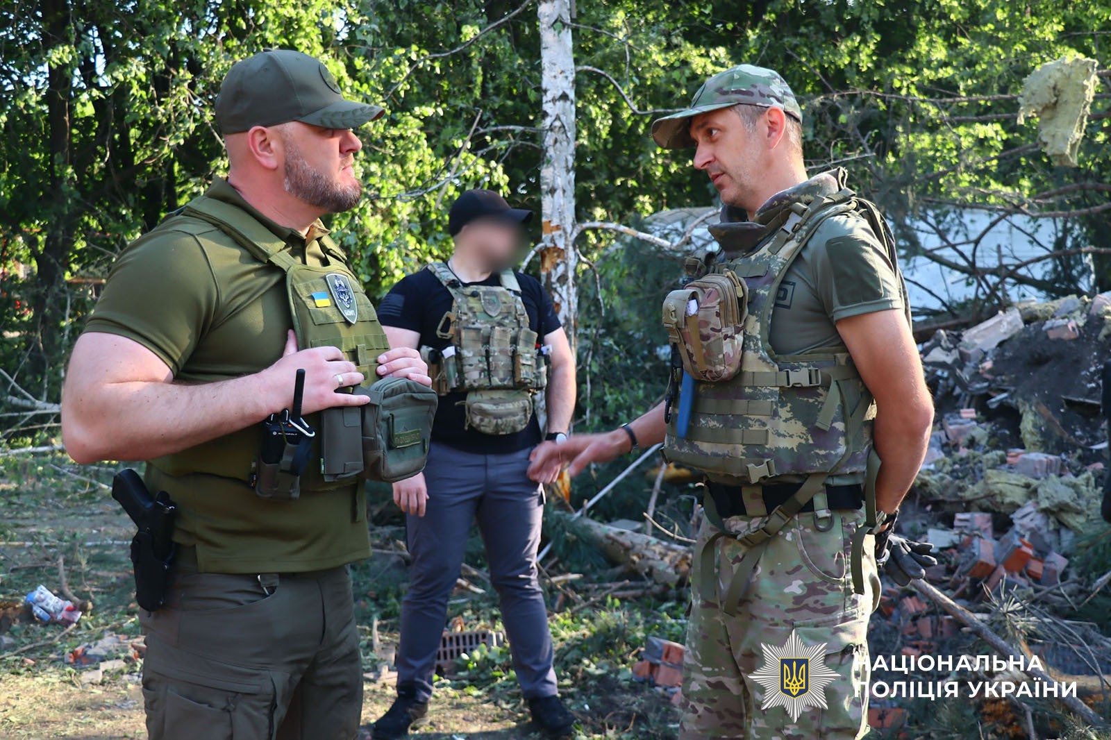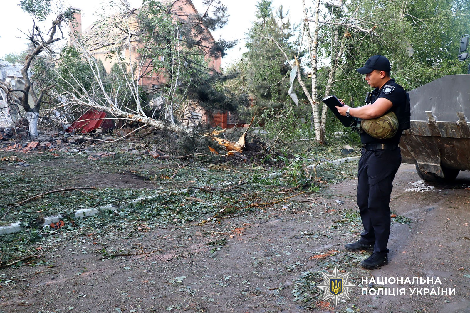 На місці удару разом з рятувальниками працювали слідчо-оперативна група, вибухотехніки та парамедики поліції, перебував начальник ГУ Нацполіції в Донецькій області Руслан Осипенко.