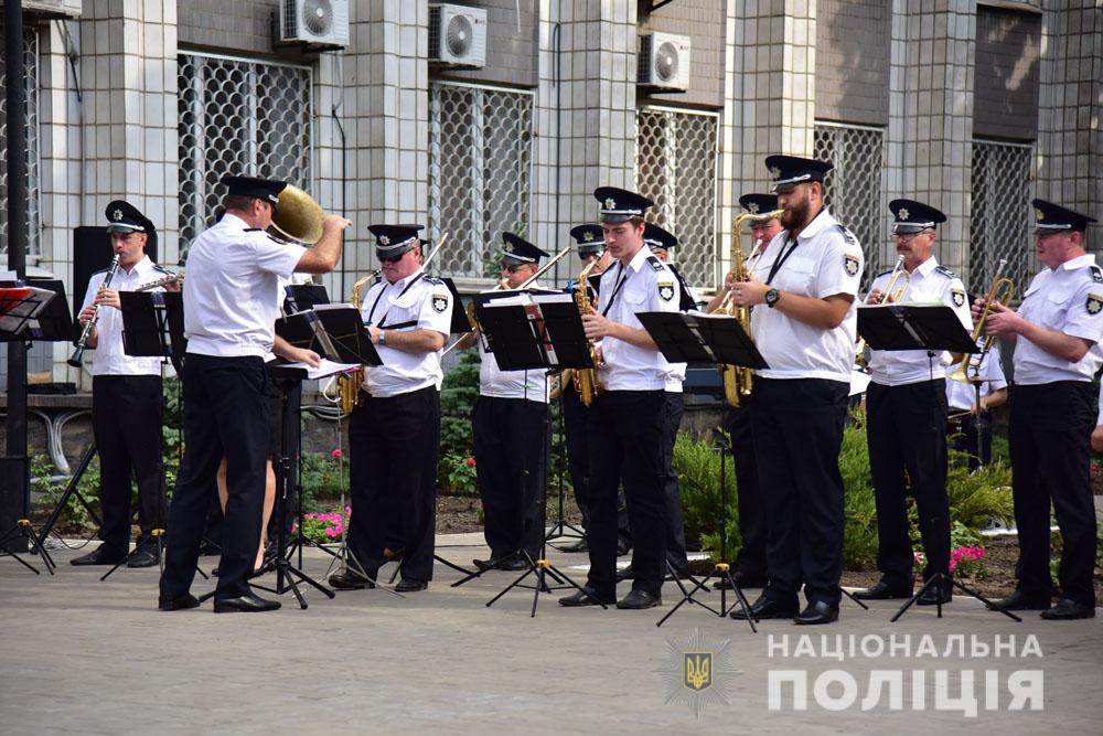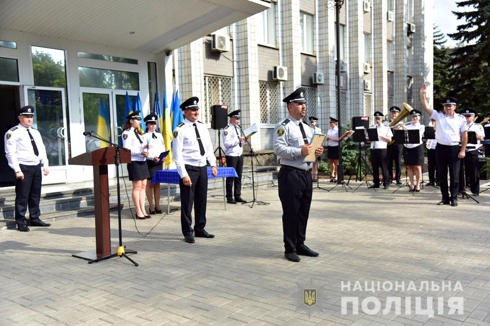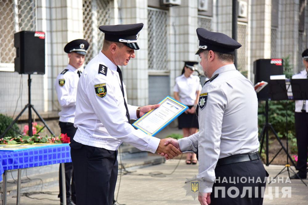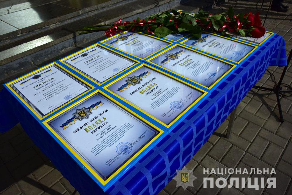 Під цим стягом поліцейські забезпечують безпеку та захищають права громадян. Кращі працівники були нагороджені подяками МВС та Національної поліції.