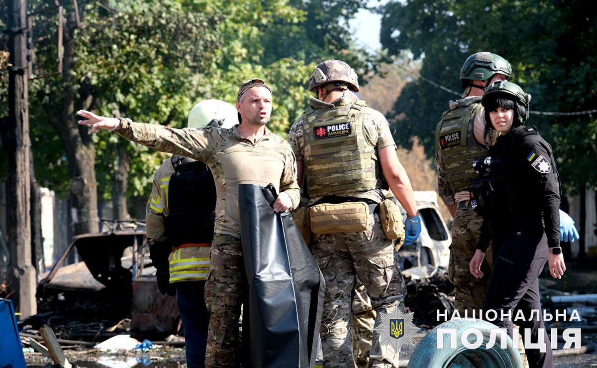Місяць тому, 6 вересня, росія вбила на ринку в Костянтинівці 17 людей, ще 32 зазнали поранень. Поліцейська Олена Василенко разом з колегами та рятувальниками першою прибула на місце трагедії. Допомагала пораненим, збирала докази теракту та… тіла. Засмучену дівчину сфотографували після закінчення рятувальної операції, коли вона без сил опустилася на тротуар.