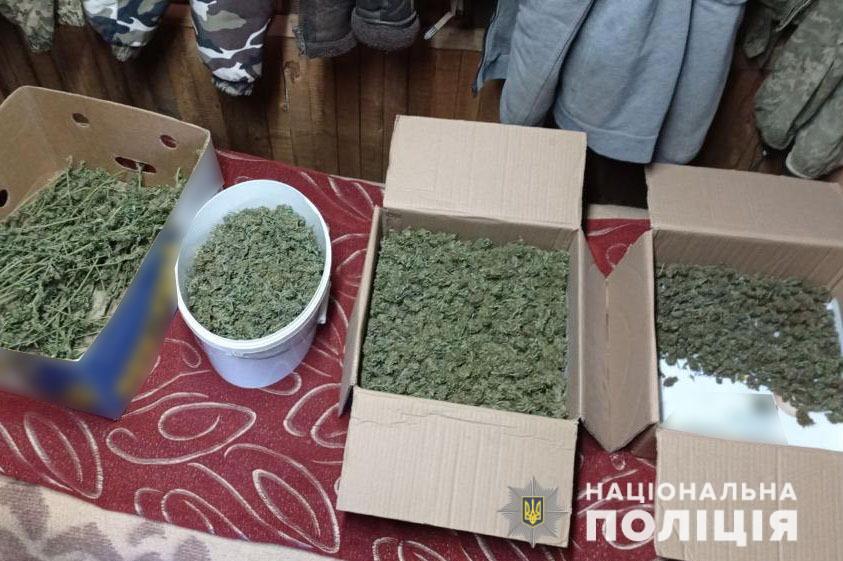 Поліцейські, під процесуальним керівництвом обласної прокуратури провели санкціонований обшук за місцем мешкання фігуранта. У результаті – вилучено висушені кущі коноплі та шишки марихуани.