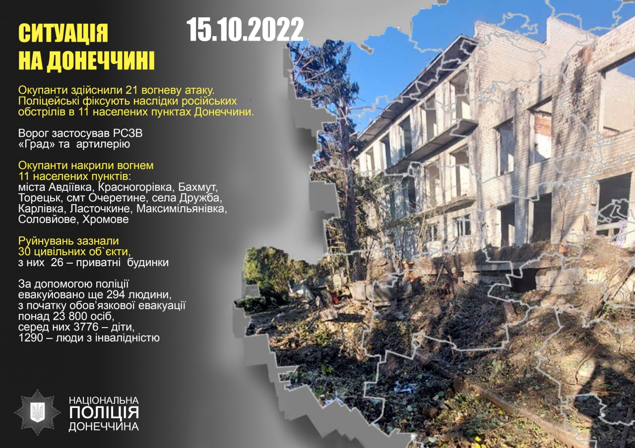 За допомогою поліції евакуйовано ще 294 людини, з початку обов’язкової евакуації понад 23 800 осіб, серед них 3776 – діти, 1290 – люди з інвалідністю.