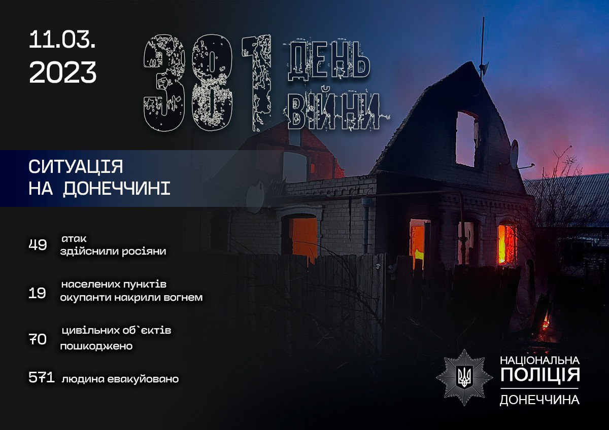 За допомогою поліції евакуйовано ще 571 людину, з початку обов’язкової евакуації - понад 49 850 осіб, серед них 6616 – діти, 2410 – люди з інвалідністю.