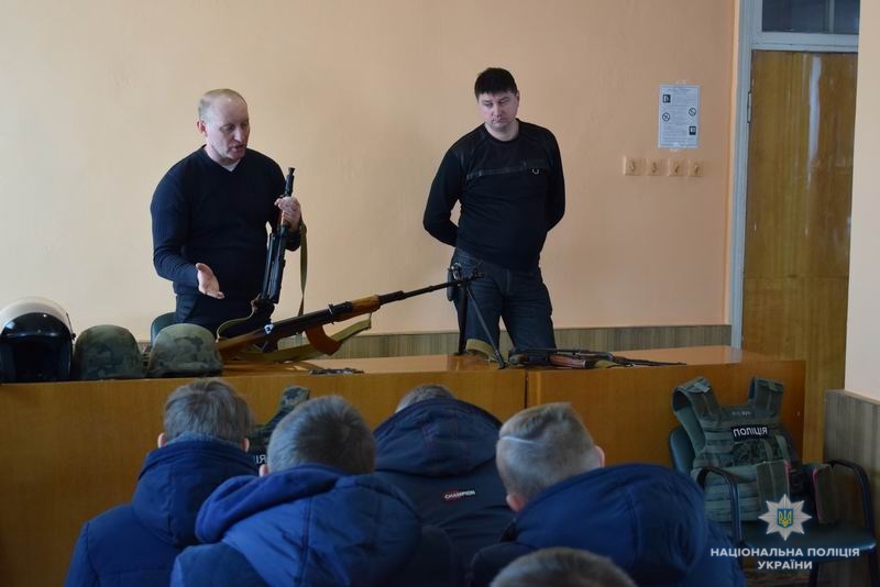 Надалі підлітки ознайомились з вимогами до фізичної підготовки правоохоронців, змогли приміряти спеціальні засоби, дізнатись про тактико-технічні характеристики різної зброї та сфотографуватись з нею на пам'ять.