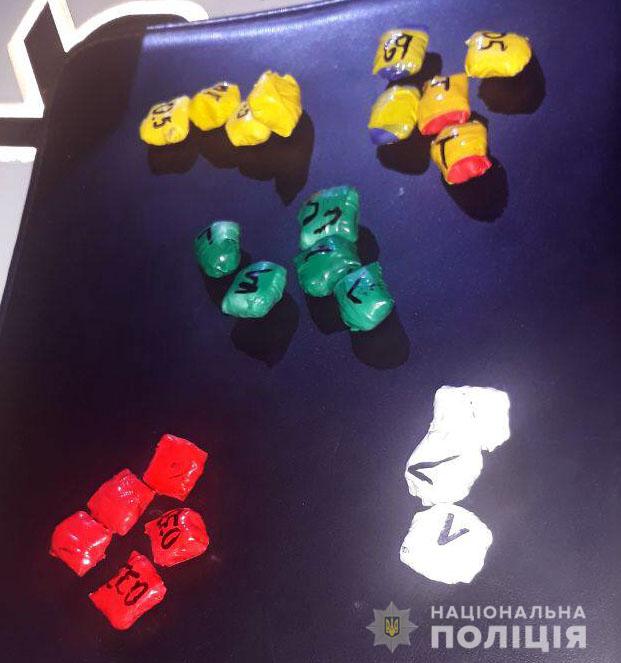 При собі зловмисник мав пакунок з розфасованою речовиною «на вибір»: 4 таблетки екстазі, 13 зіп-пакетиків з порошкоподібною речовиною білого кольору, ймовірно амфетаміном, та 5 згортків з марихуаною.