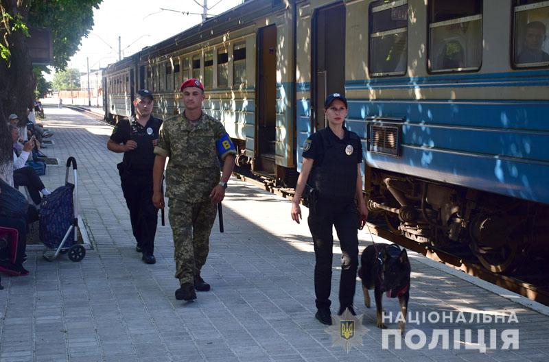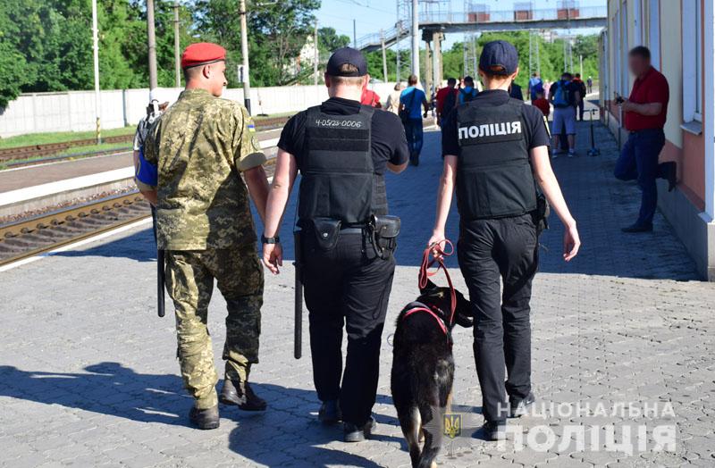 Відсьогодні на залізниці працюють спільні наряди поліції та військової служби правопорядку, до яких входить кінолог зі службовим собакою, натренованою на пошук зброї та вибухівки.
