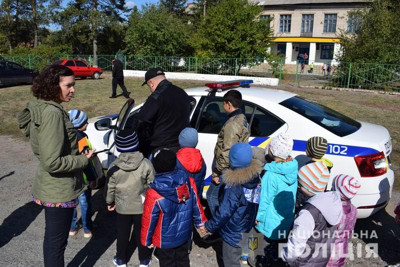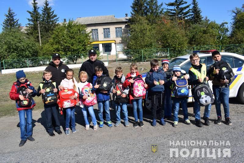 На завершення діти отримали світловідбиваючі наліпки на шкільні рюкзаки, посиділи у службовому автомобілі та дізналися більше про роботу поліцейських, які дбають про безпеку дорожнього руху.