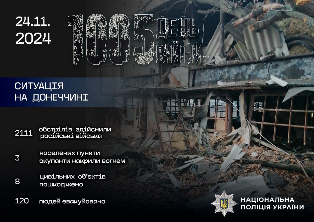 За минулу добу поліція зафіксувала 2 111 ворожих атак по лінії фронту та житловому сектору.