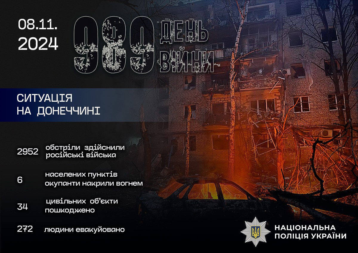 За добу поліція зафіксувала 2 952 ворожих обстріли по лінії фронту та житловому сектору.