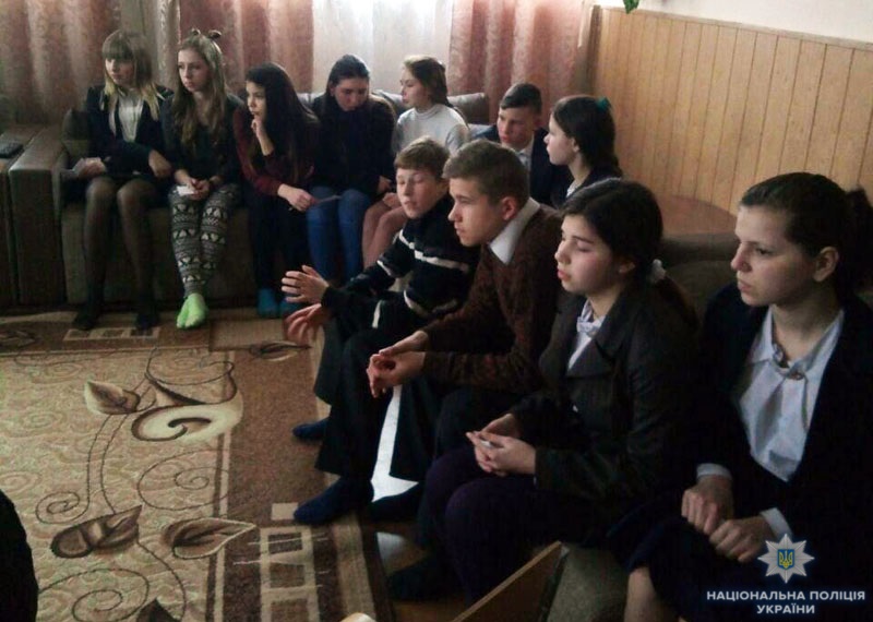 А у холі правоохоронці приділили увагу підліткам – учням 9-х класів. Усі присутні добре влаштувались у коло та довго говорили про національну поліцію, патріотизм. Діти висловили свою думку про сьогоднішню систему правоохоронних органів, а багато хто з вихованців бачить своє майбутнє у поліції.