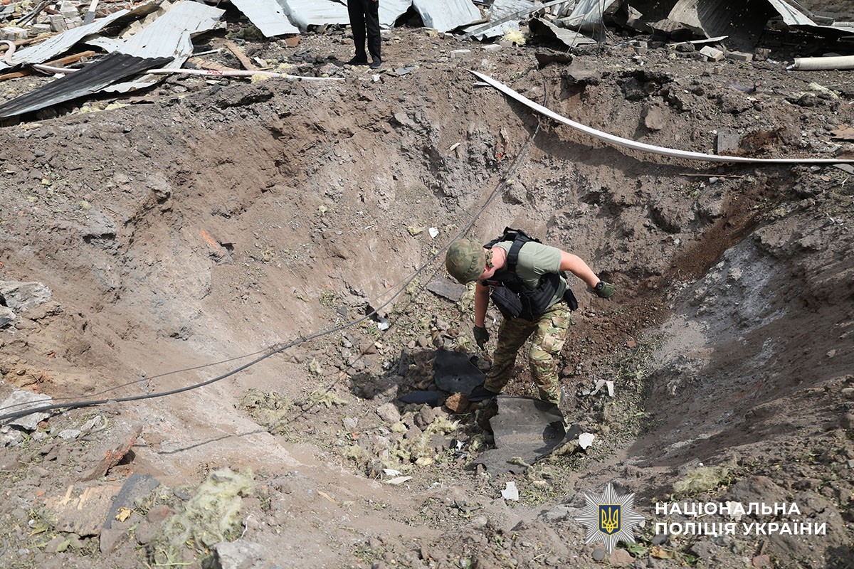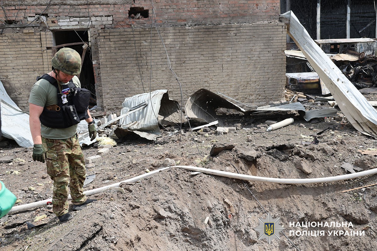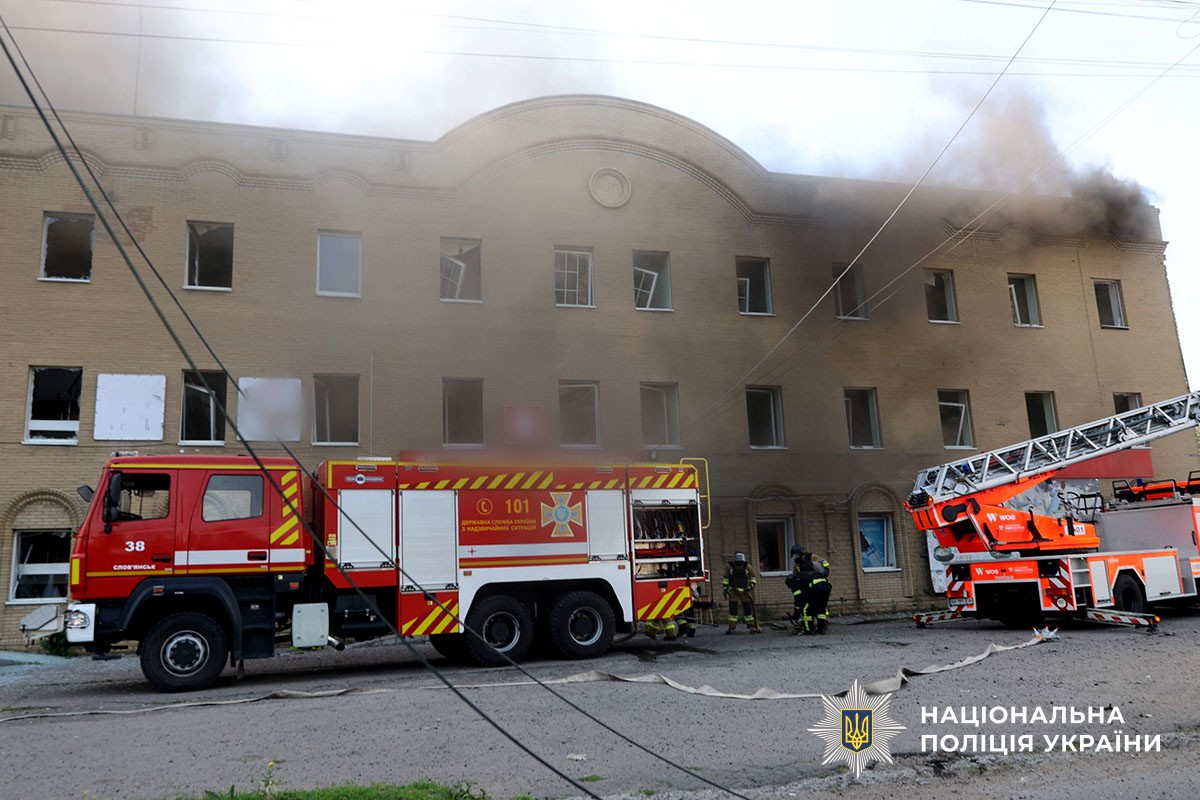 Атака на центральну частину міста сталася сьогодні близько 08:00. Окупанти вдарили з РСЗВ «Торнадо-С». Поліцейські документують наслідки атаки.