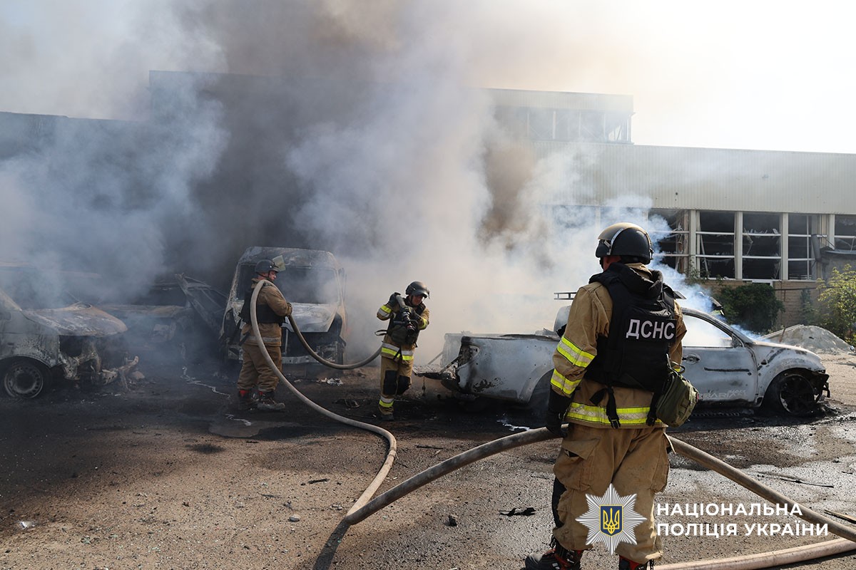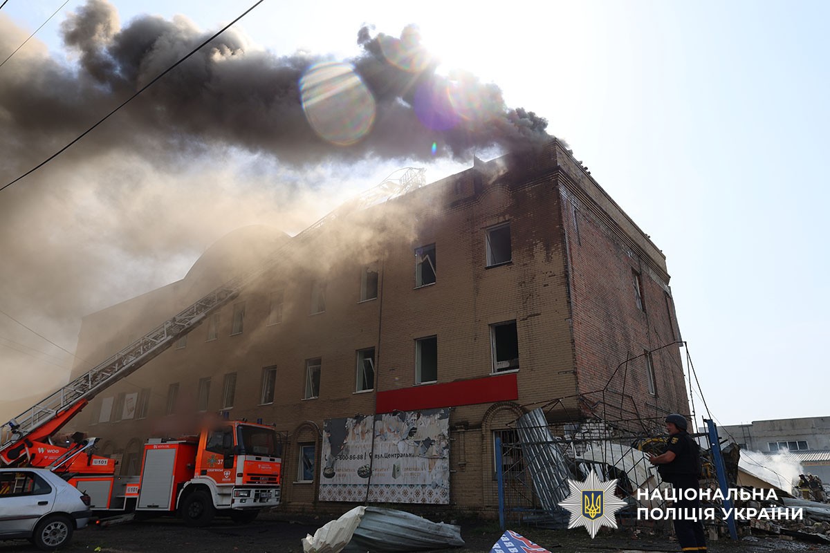 Руйнувань зазнали торговельний комплекс, адмінбудівля, СТО, освітній заклад і 10 автомобілів.
