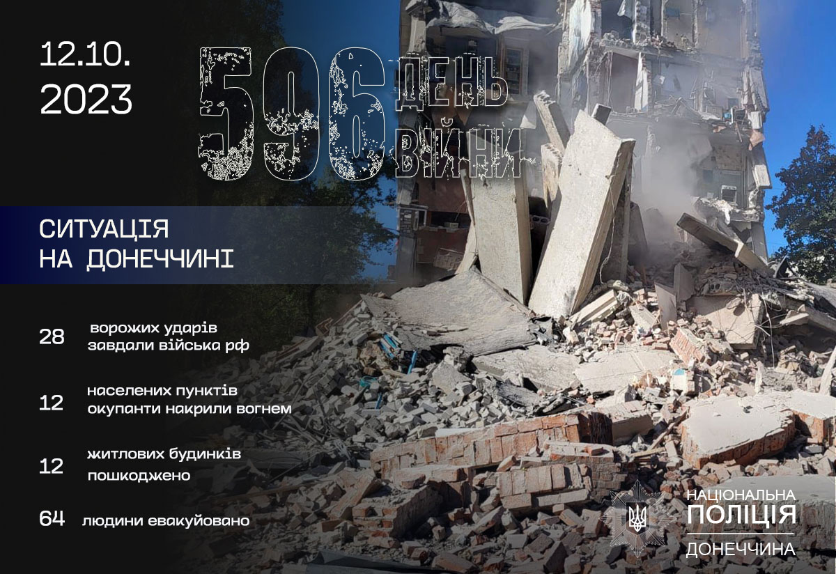 Армія рф завдала удари по 12 населених пунктах: містах Авдіївка, Святогірськ, Часів Яр, смт Желанне, Курдюмівка, Неліпівка, Очеретине, селах Максимівка, Нетайлове, Новоселівка Перша, Первомайське, Уманське.