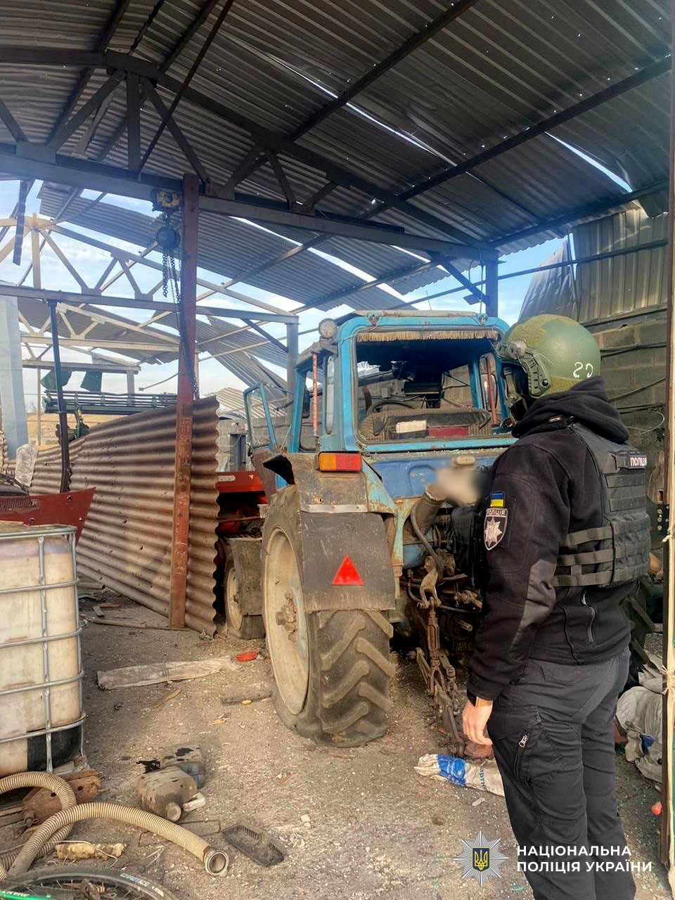 Пошкоджено 18 цивільних об’єктів – 10 житлових будинків, ангар, сільгосптехніку, автомобілі, лінію електропередач.