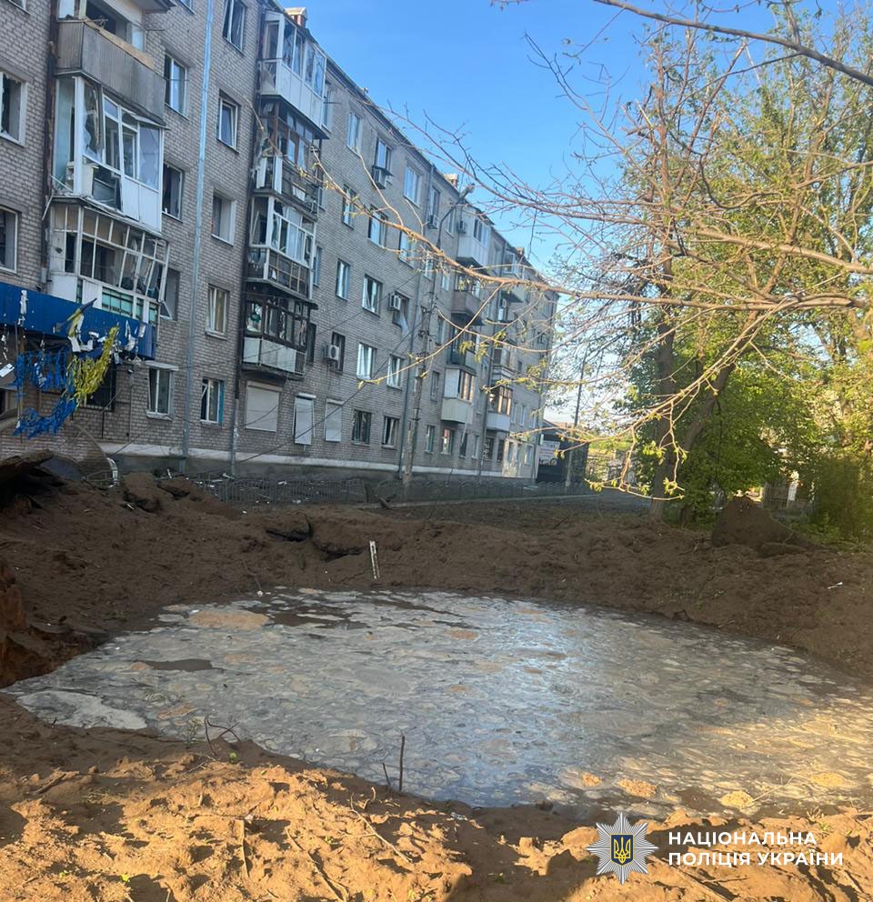 По Слов’янську окупанти поцілили ракетою(бомбою) «Грім-Е1», пошкодили два будинки, навчальний заклад, відділення банку, 7 авто.