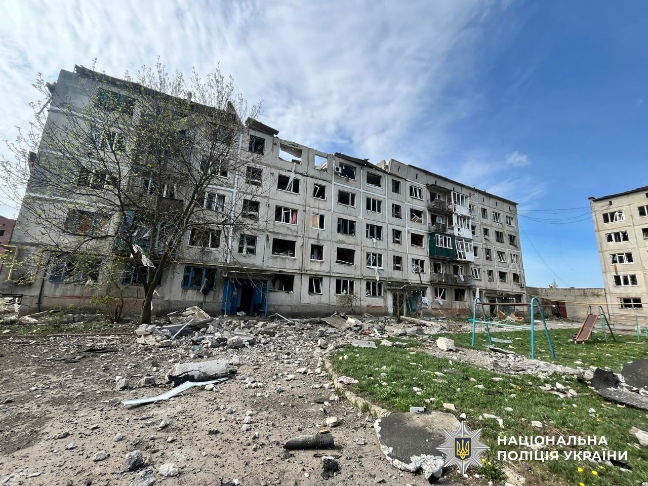 Авіаударом в Очеретиному зруйновано п’ятиповерхівку.