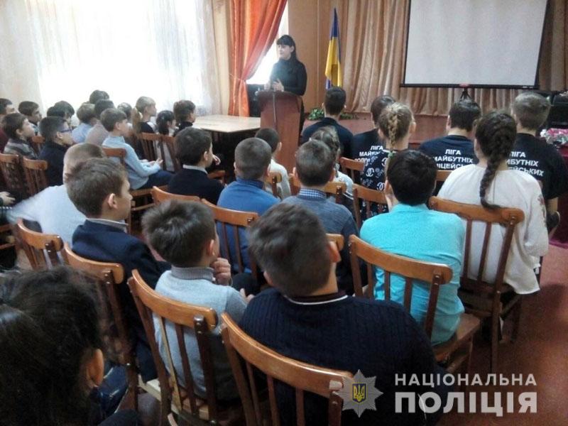 Співробітники ювенальної превенції організували профілактичну бесіду у школах № 17 та № 30. Поліцейські розповіли про норми законодавства України щодо протидії булінгу дитячому середовищі. Провести захід правоохоронцям допомагали старшокласники з «Ліги майбутніх поліцейських».