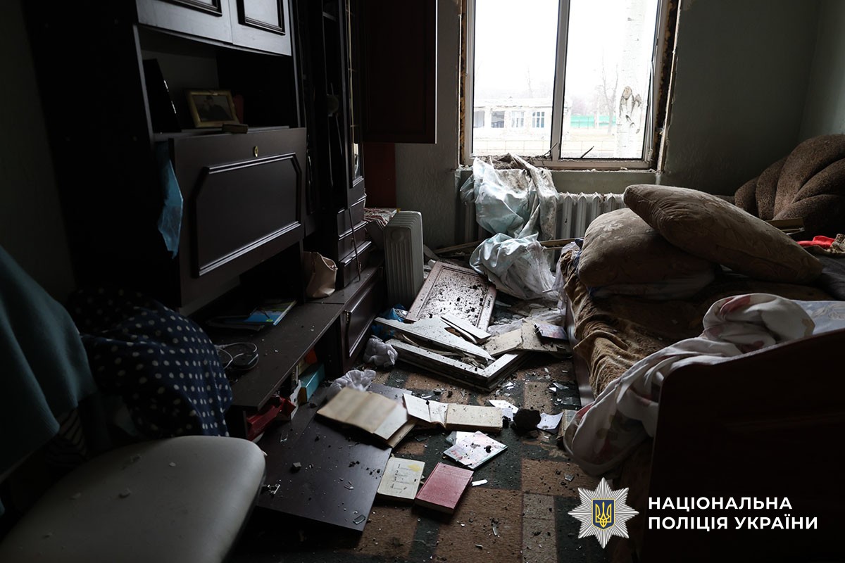 Крім того, сьогодні після опівночі росія поцілила по центру Покровська чотирма ракетами С-300. Поранено 37-річного цивільного мешканця. Руйнувань зазнали заклад освіти, підприємство, житлові будинки. На місці працюють поліцейські, масштаби пошкоджень встановлюються.