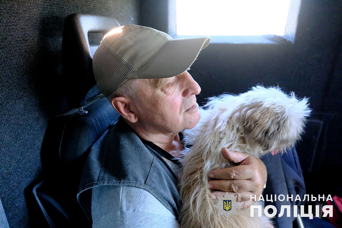 Через постійні обстріли та підвальне життя у 76-річного чоловіка загострилася хвороба – почали відмовляти ноги. Тому разом із дружиною звернулися до поліції по допомогу у виїзді. Не кинули й вірного пухнастого друга.