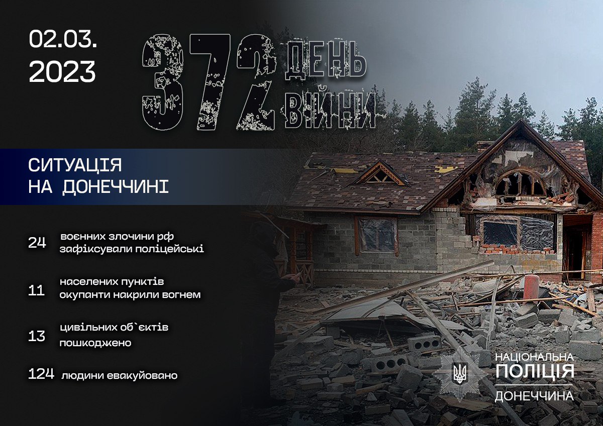 За добу поліцейські Донеччини зафіксували 24 воєнних злочини рф проти мирного населення