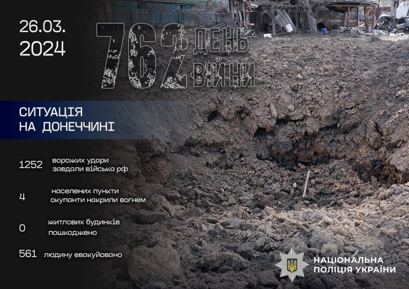 Крім того, у ніч на 26 березня окупанти вдарили по Селидовому та Новогродівці ракетами (тип озброєння встановлюється). У Новогродівці поранено цивільну особу. В Селидовому є руйнування на території підприємства.