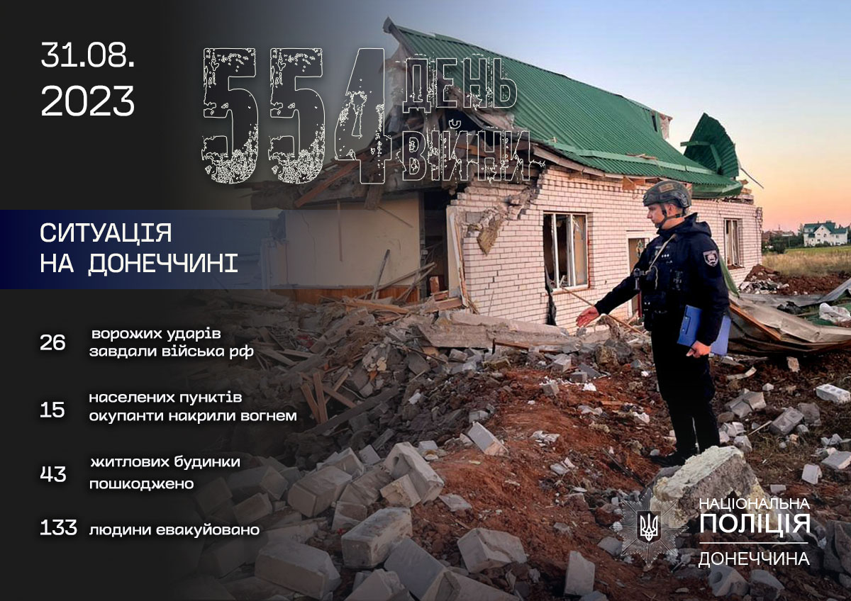 За добу росія вбила на Донеччині трьох цивільних мешканців і поранила ще 11 – поліція задокументувала воєнні злочини