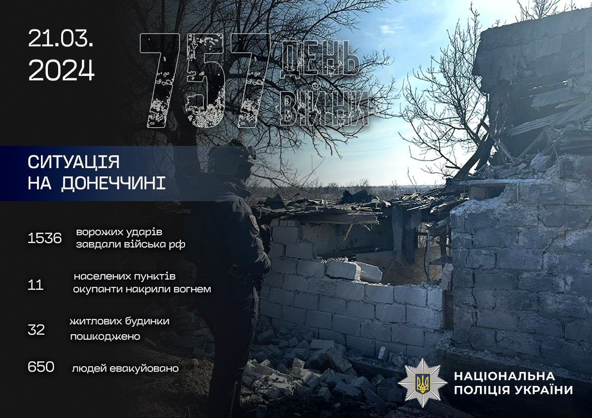 Поліція зафіксувала 1536 влучань ворога по області, з них 18 – по житловим кварталам.