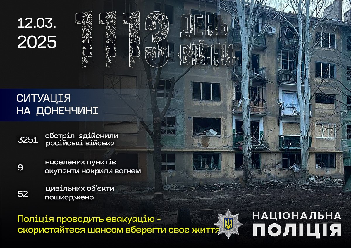 Поліція зафіксувала 3 251 ворожий обстріл по лінії фронту та житловому сектору.