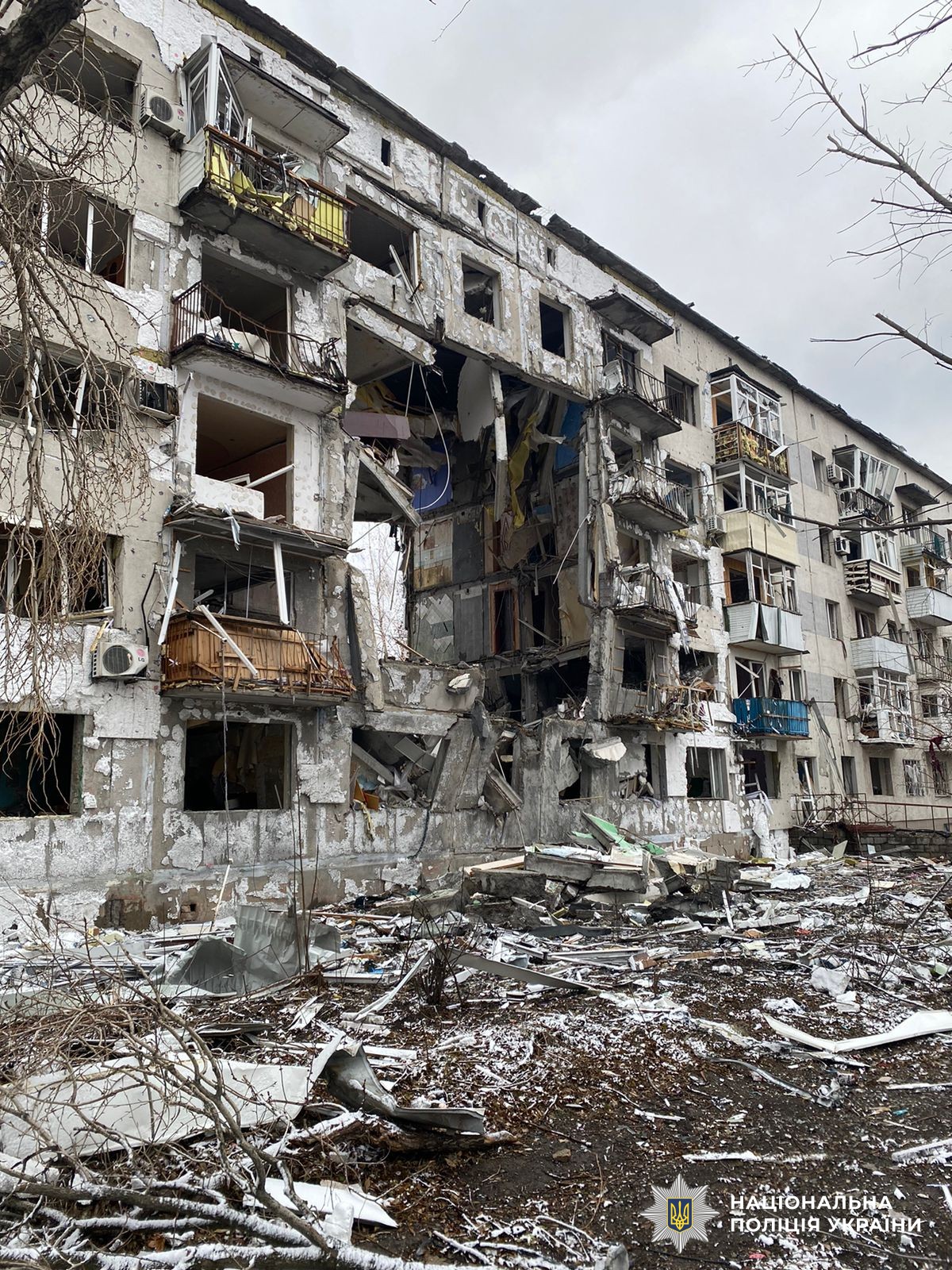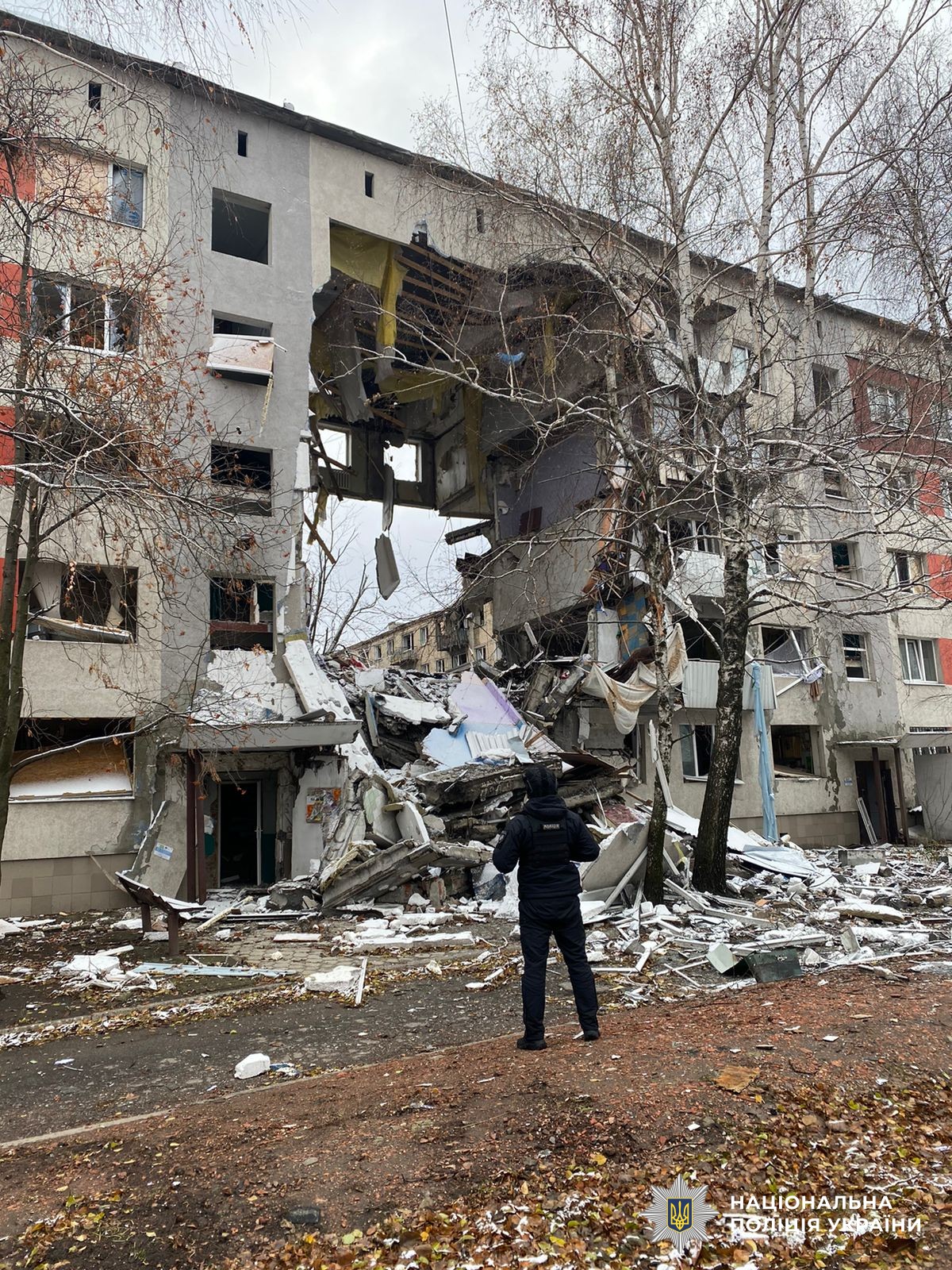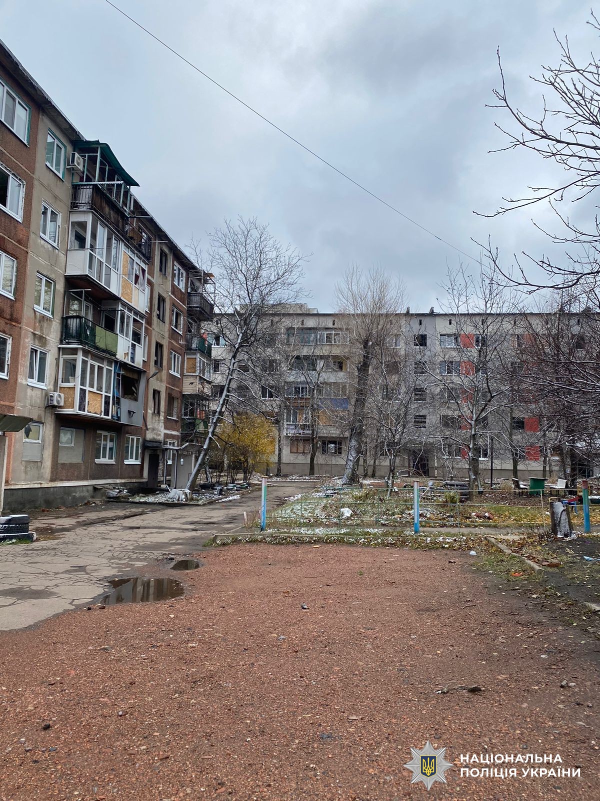 Крім того, поліцейські задокументували наслідки обстрілу Мирнограда, який стався 21 листопада. Внаслідок прямого влучання зруйновано п’ятиповерховий житловий будинок, ще два будинки пошкоджено. Попередньо: без постраждалих.