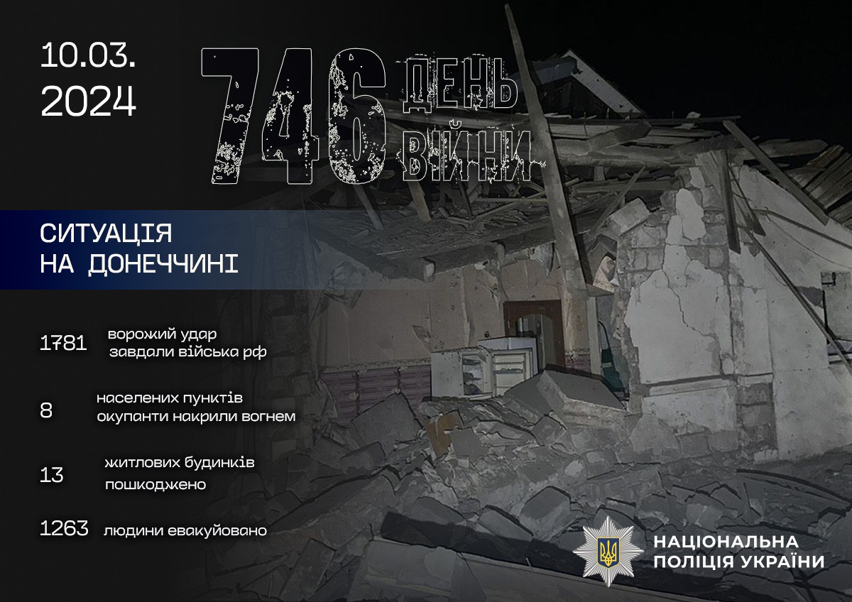По Мирнограду росія поцілила трьома ракетами «С-300». Поранень зазнали 10 людей, серед них одна дитина. Пошкоджено 17 багатоквартирних будинків і 27 цивільних автомобілів.