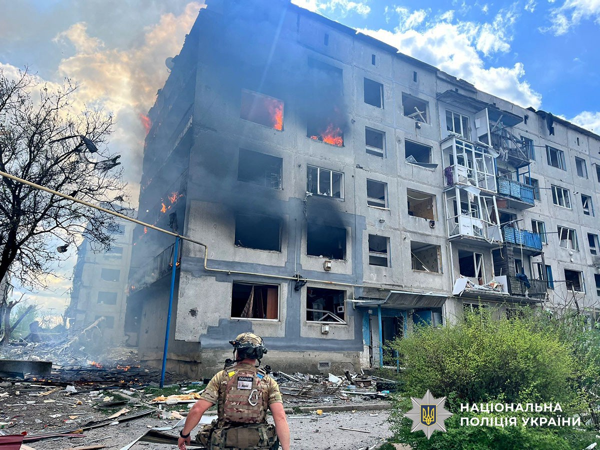 Авіаудар росія завдала по Очеретиному – вбила жінку, ще двоє цивільних травмовані. Пошкоджено три п’ятиповерхівки.