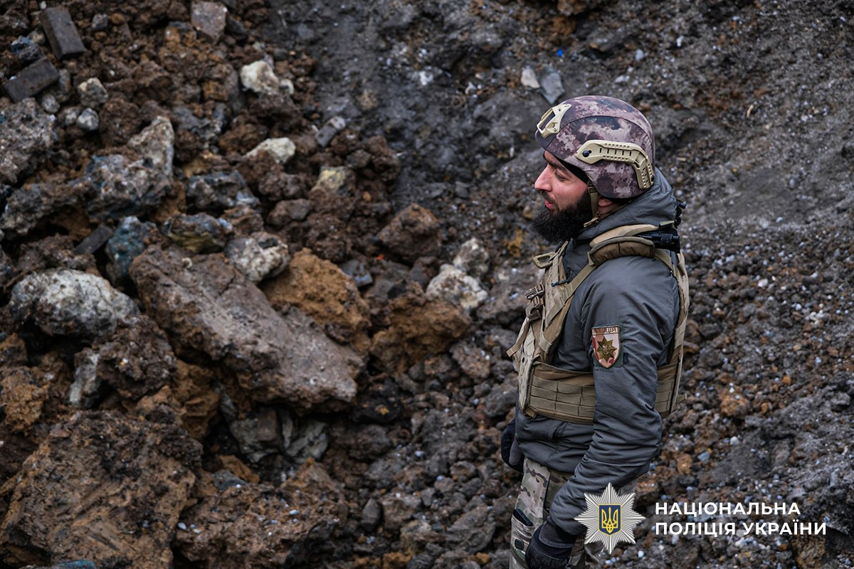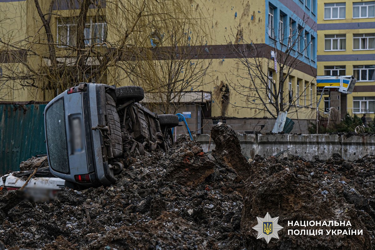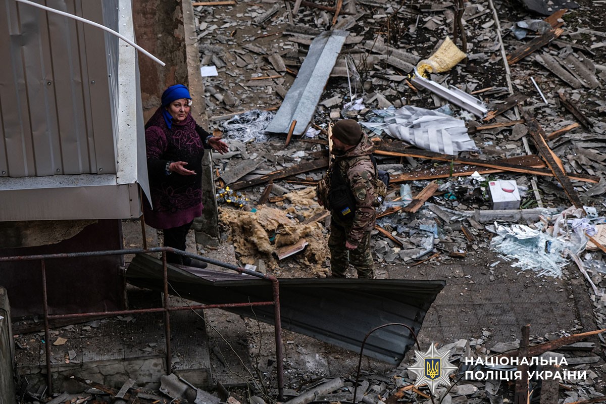 Окупанти вдарили по місту 8-ма ракетами. Серед постраждалих – хлопчик, якому завтра має виповнитися 7 років. На місці працювали слідчо-оперативна група, вибухотехніки, парамедики поліції та всі профільні служби. У темряві поліцейські надавали людям допомогу.