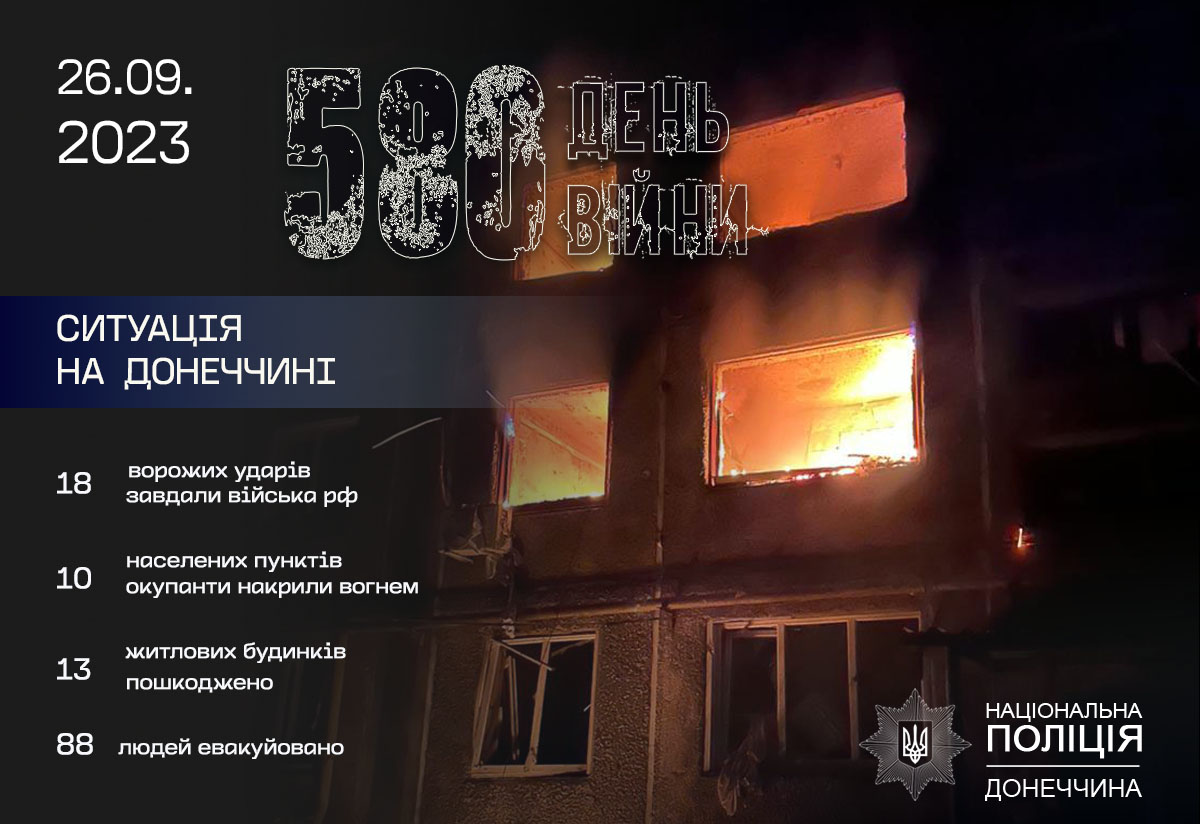 Протягом доби ворог завдав 18 ударів по цивільному населенню. Окупанти били з авіації, РСЗВ «Смерч», «Град», артилерії, танків.