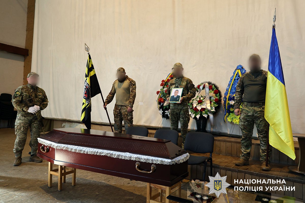 Прощання з поліцейським відбулося на Донеччині. Провести захисника в останню путь прийшли друзі, колеги, побратими та представники влади.