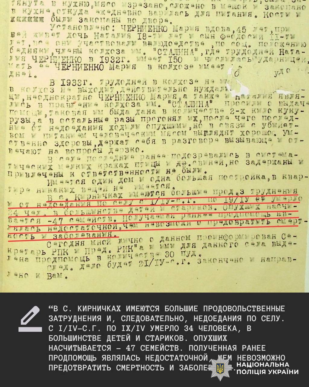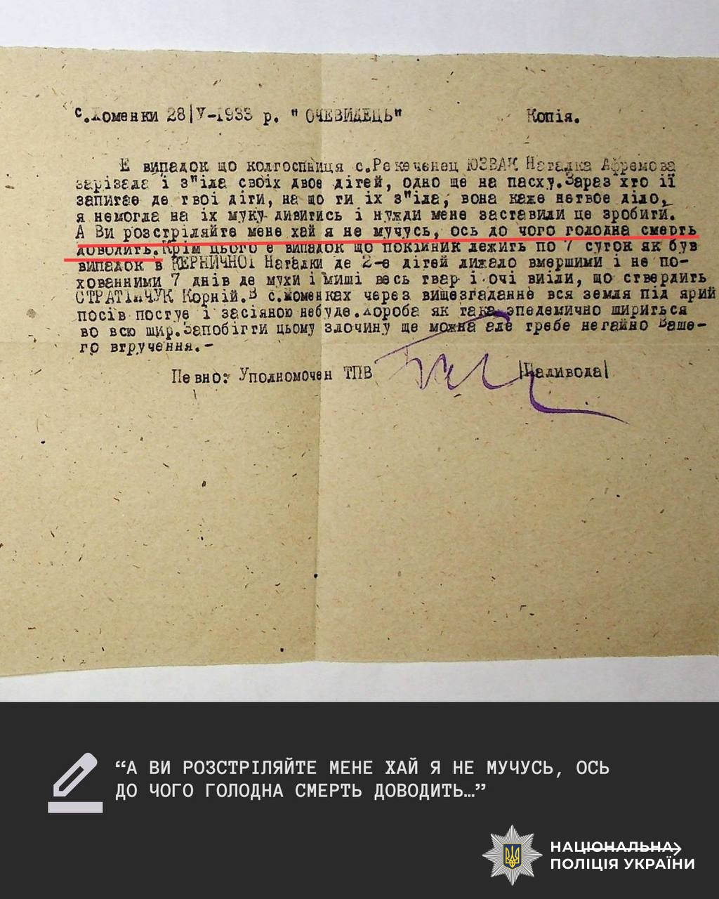 "Це підтверджують численні свідчення людей, які збереглися в архівах. Днями ми передали Музею Голодомору оцифровані копії понад 1000 кримінальних справ періоду геноциду українців. Деякі цитати зі свідчень - на фото", - зазначив очільник МВС.